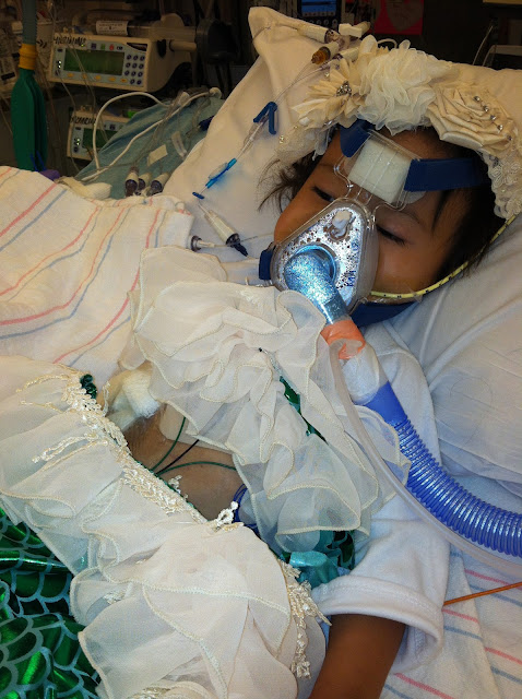 Mary, so thankful and so relieved to see her big brown eyes and "hear" the strength in your voice again!!! I was in tears for you yesterday! Ivy is absolutely the cutest mermaid I've ever seen!!! She will enjoy seeing that she got to dress up too!! :) Lexi was also the cutest Snow White of 2012!! Chloe holds the title for 2011! ;) I'm just so thankful you got a good neurologic report AND got to see her eyes open and that she reached out for her mama!!! Hooray! We will continue praying for all that Ivy and you need!!! Much love from Atlanta!!!
